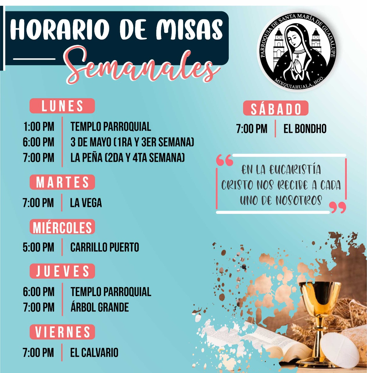 Lunes 12:00 hrs a 1:00 pm En el Templo Parroquial
